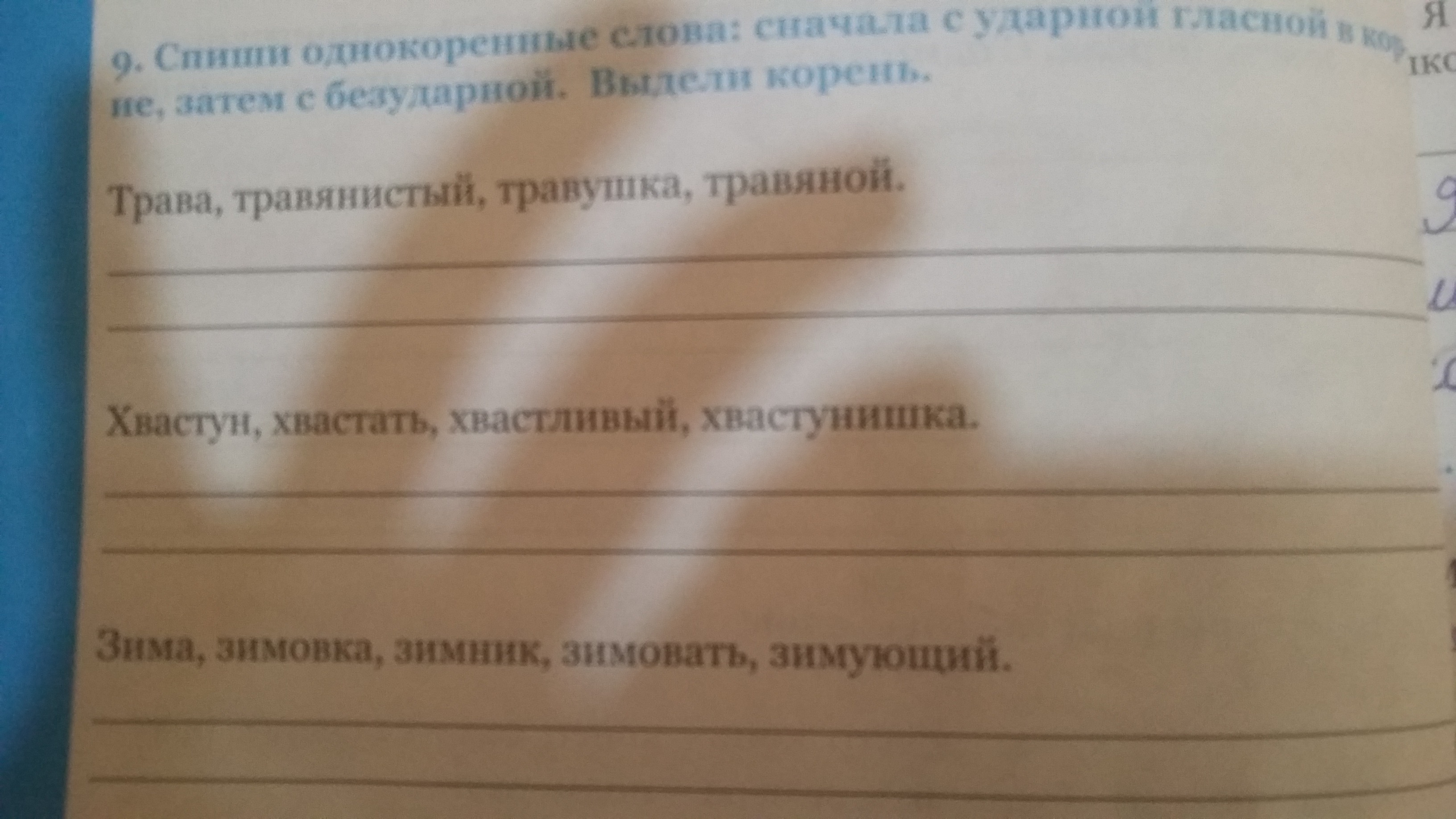 Травушка, трава, травянистый, травяной. Везде корень ТРАВ. Хвастать, хвастун, хвастливый, хвастунишка. Везде корень ХВАСТ. Зимник, зима, зимовка, зимовать, зимующий. Везде корень ЗИМ.