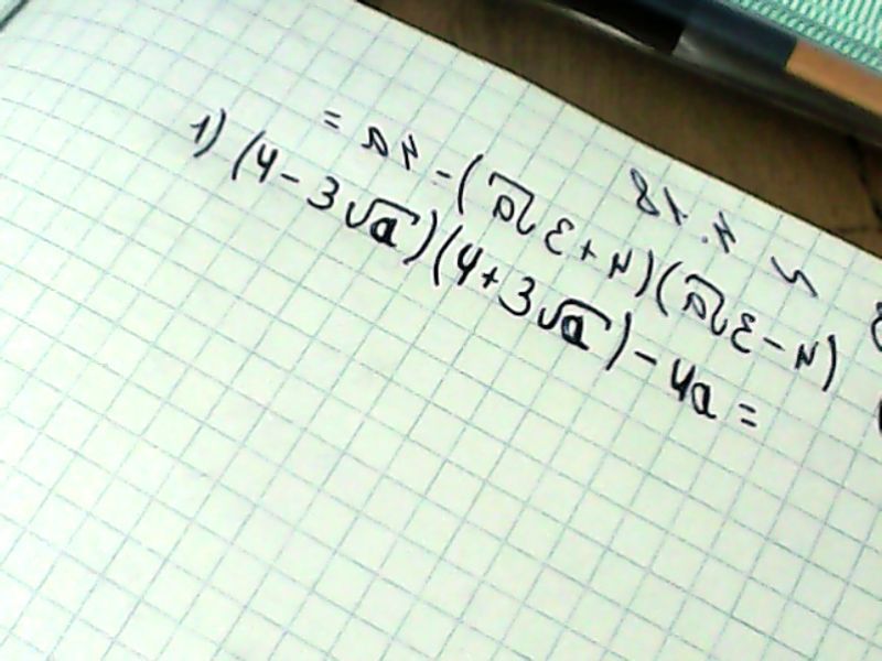 (4 - 3 sqrt{a} )(4  + 3 sqrt{a}) - 4a =  {4}^{2}  -  ({3 sqrt{a} })^{2}  - 4a = 16 - 9a - 4a = 16 - 13a