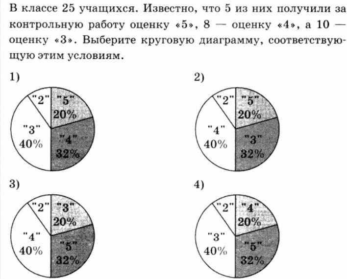 диаграмма номер 1 , потому что по условию меньше всего учеников получило оценку 5 , а больше всего- оценку 3