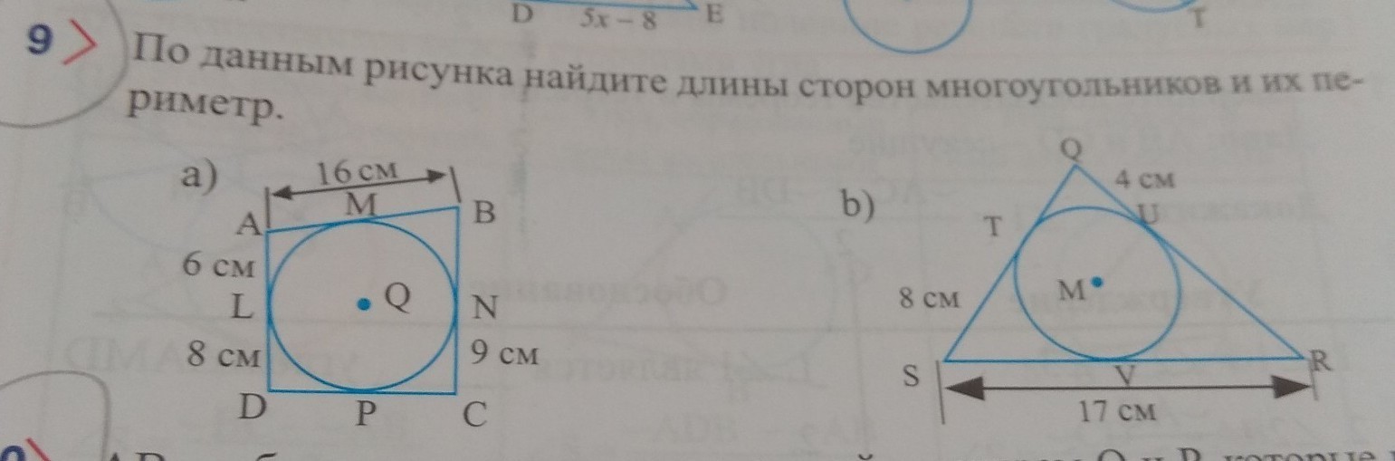 TQ= 4 см, SV=8 см, VR= 17-8=9 см, RU=9см.