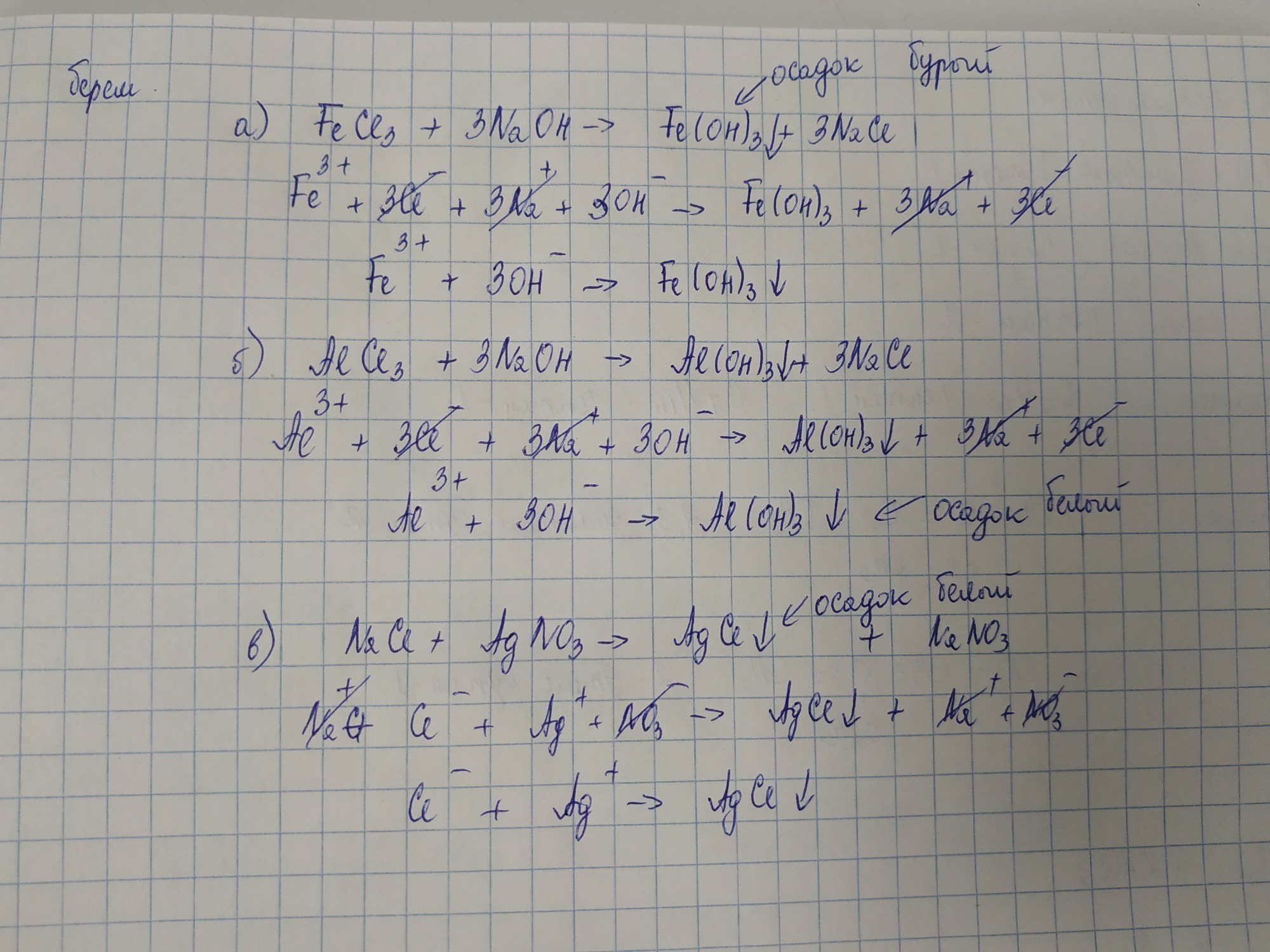 стрелка вниз осадок. Fe(OH)3 бурый или красный осадок. Al(OH)3 белый осадок. AgCl белый осадок.