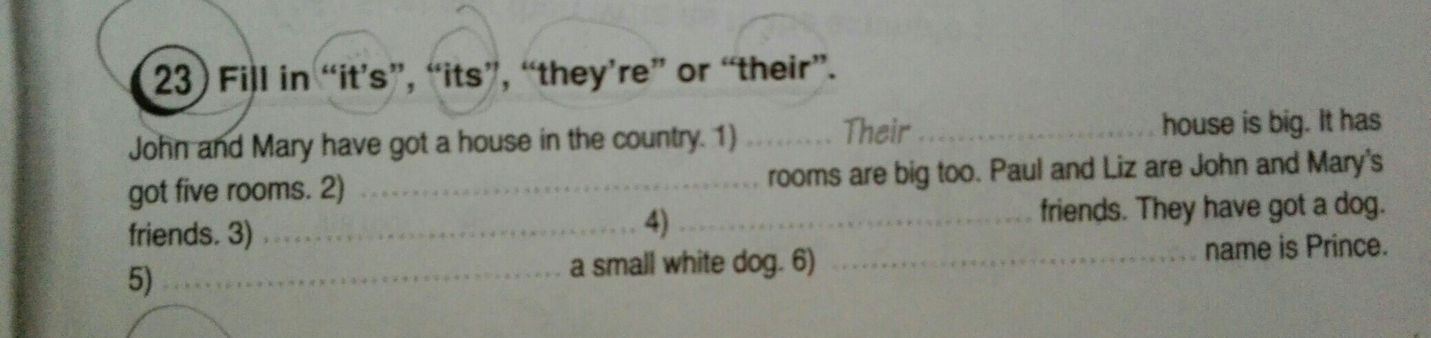 2) they're, 3) its, 4) they're, 5) their,6) it's