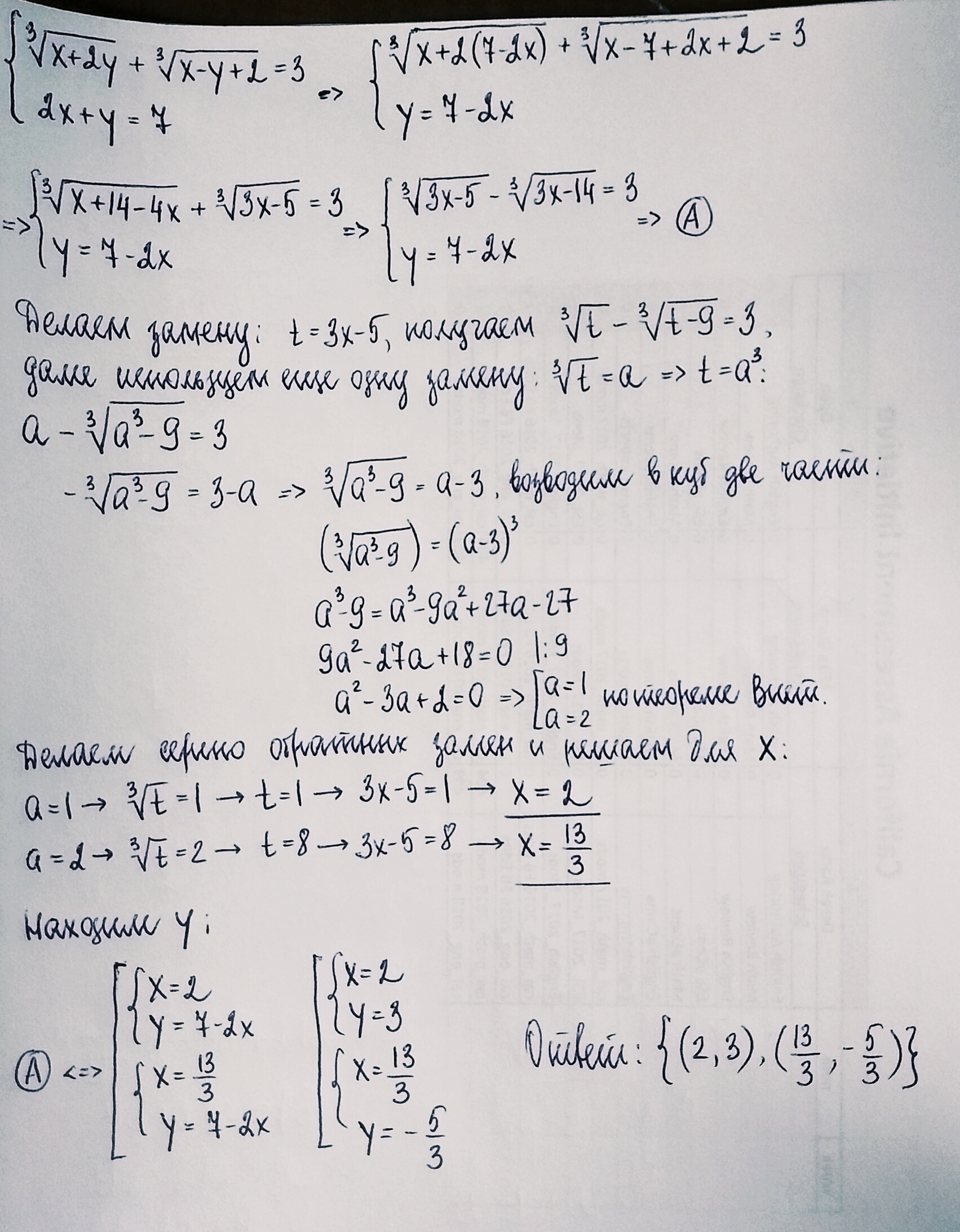 Ловите решение. Замена, и ещё раз замена, чтобы избавиться от кубических корней. Удачи вам!