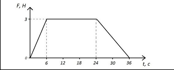 Сила уменьшается с 3 Н до 0 за промежуток времени с 24 по 36 с.