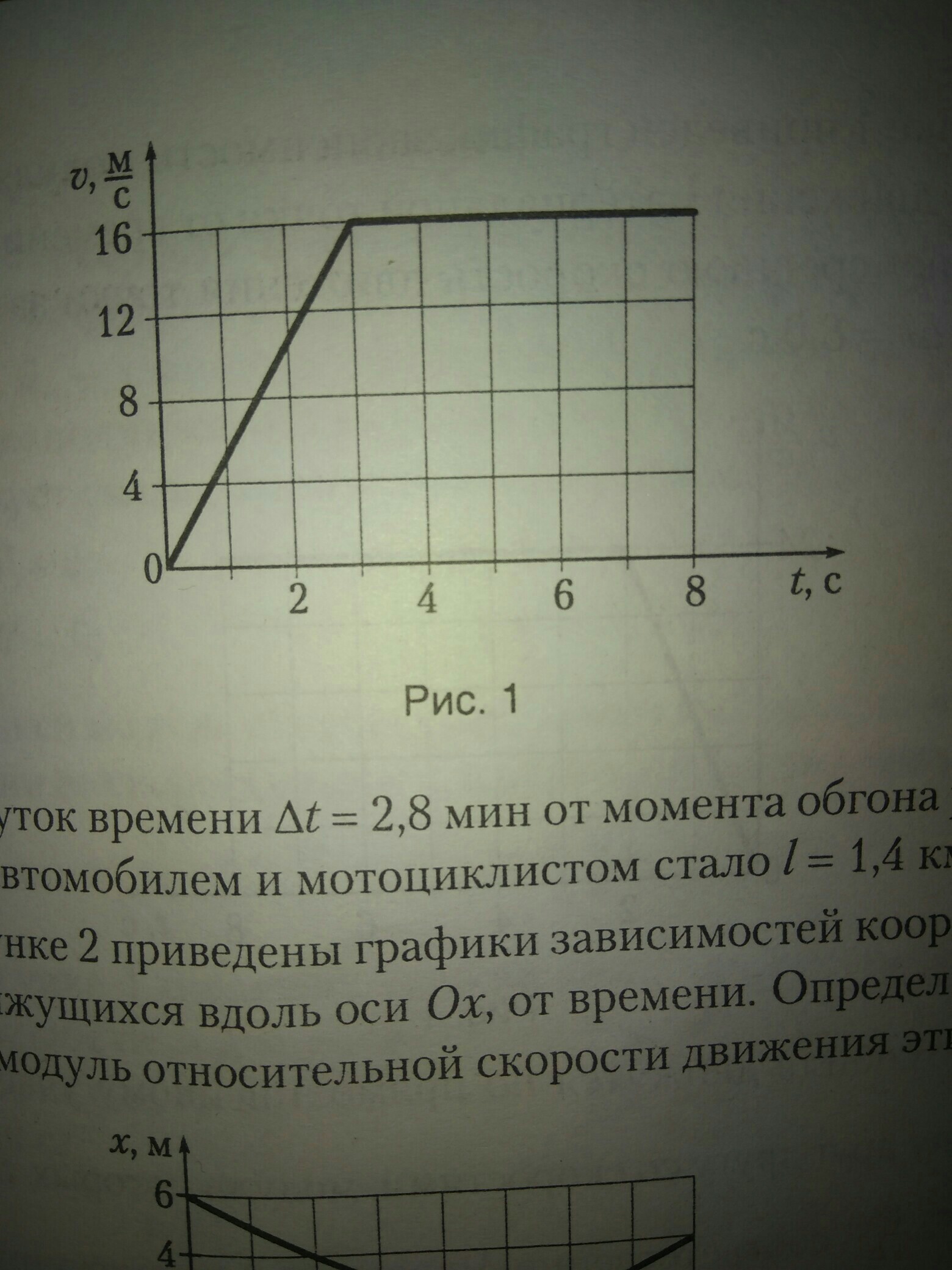 На рисунке 1 приведен график зависимости модуля мгновенной скорости материальной точки от времени.Определите по графику среднюю скорость движения точки за промежуток времени ∆t=8,0с