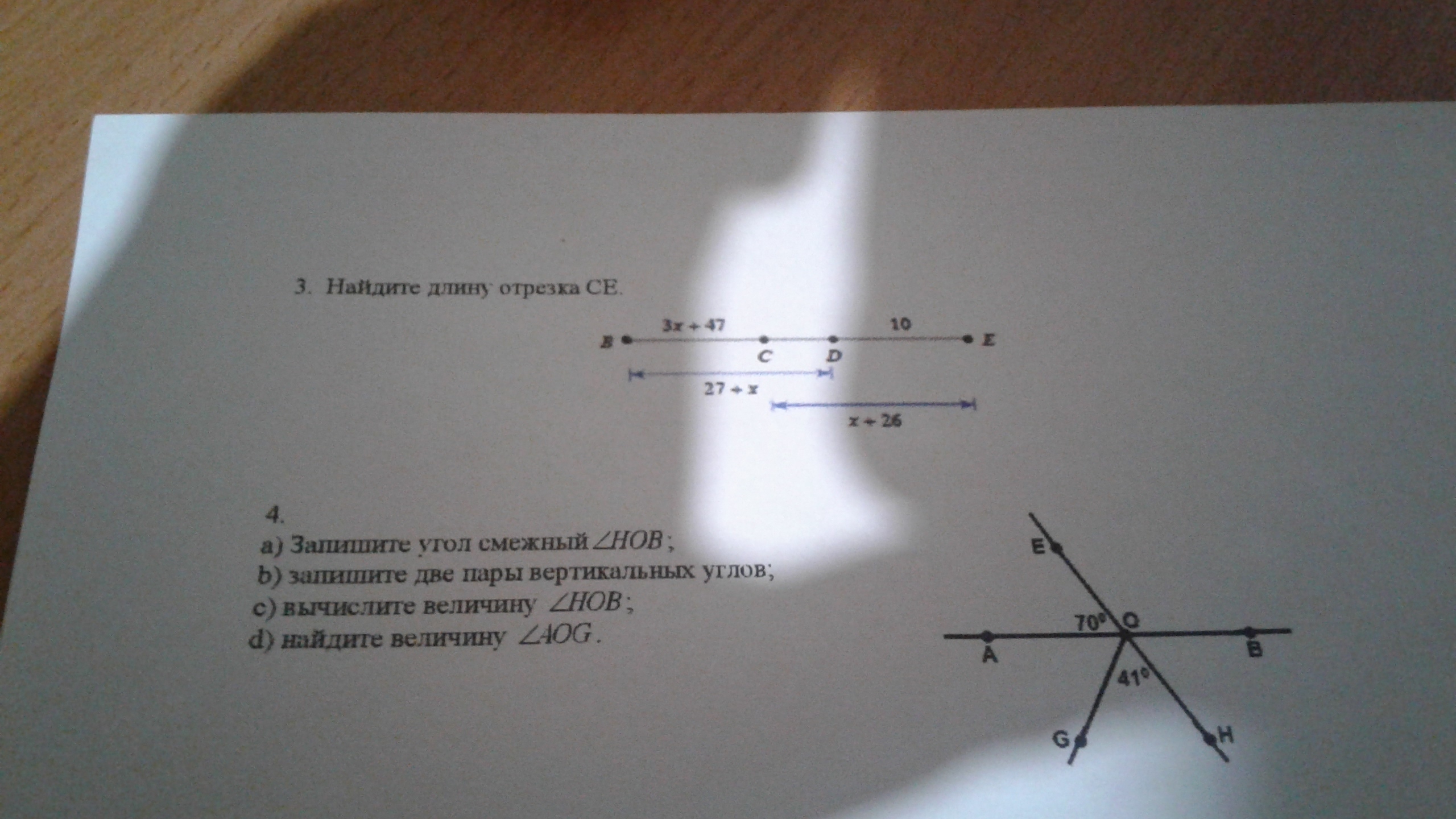 c) Угол HOB=70