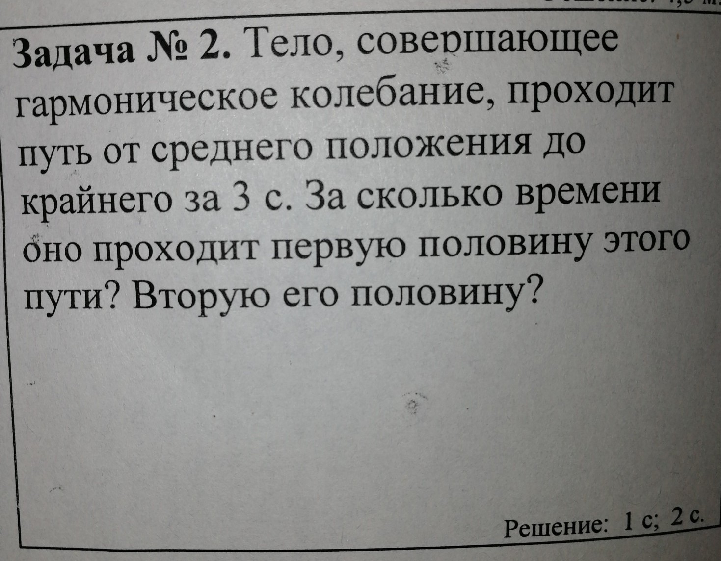 В начале гармоничного колебания тело проходит расстояние за 1 сек, потом за 2, а от середины краю три