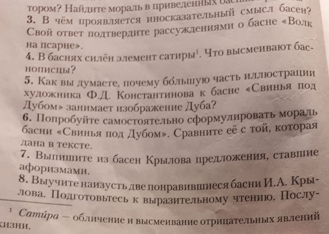 6)Мораль басни такова, не надо быть эгоистом и жить только ради себя. Вокруг есть люди которых ты обидел и не обращаешь на них ни малейшего внимания, а у них свои обиды и переживания.