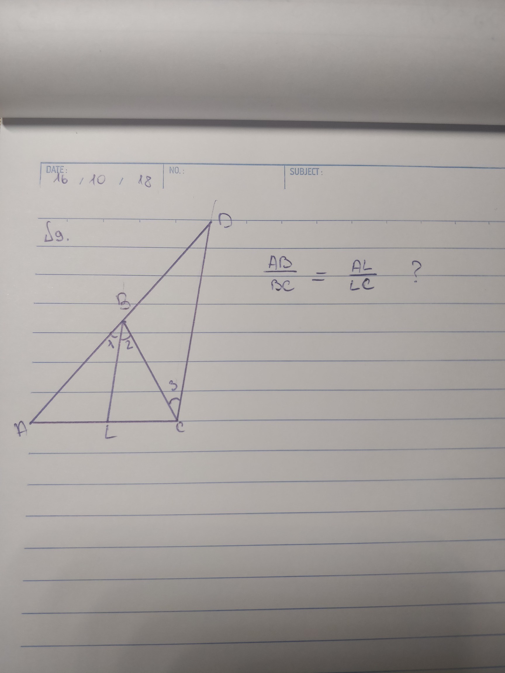 По теореме фалеса AB будетравноВС а АL будет ровно LС соответветственно мы докозали пропорцию