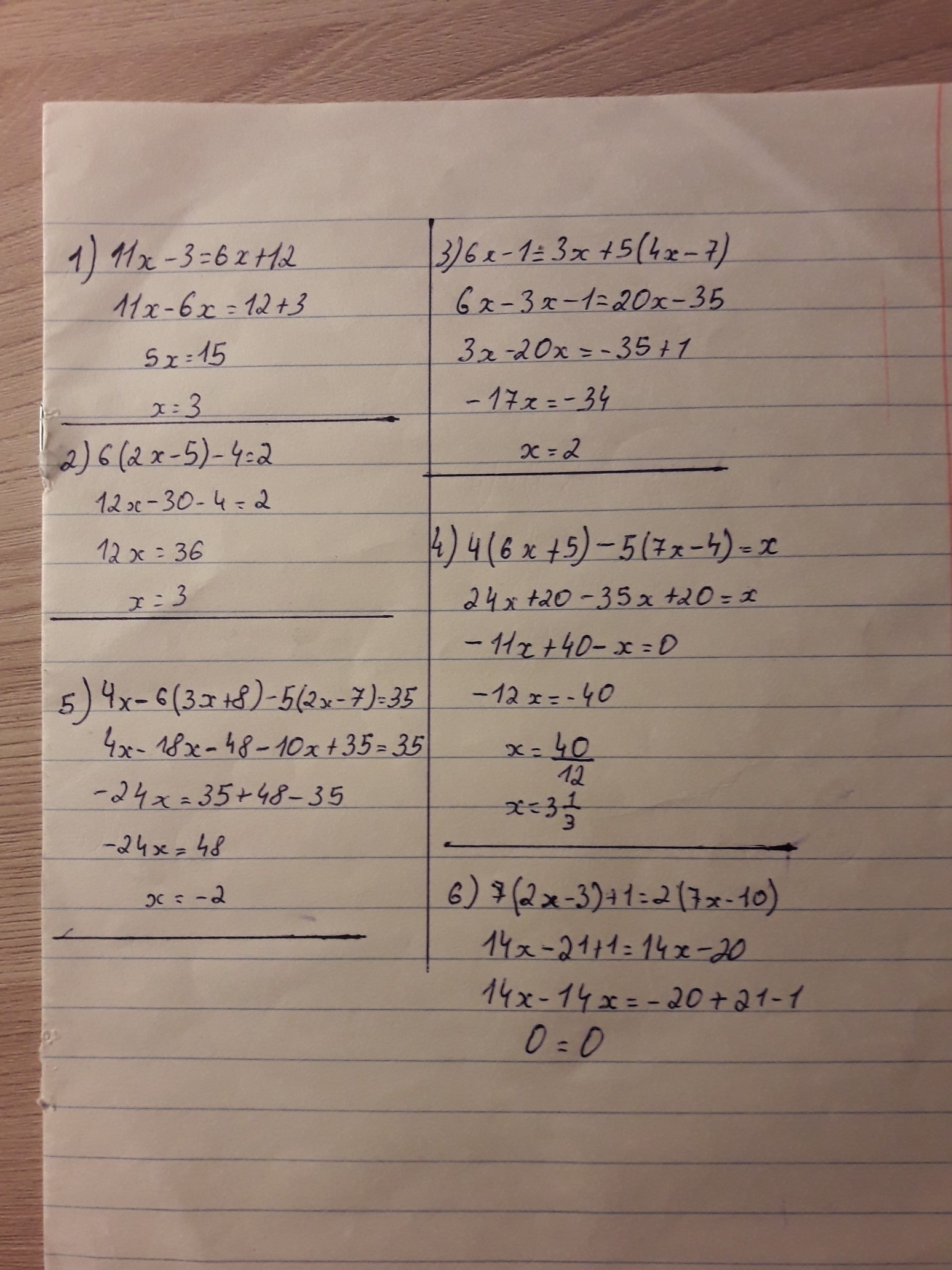6x-1=3x=5(4x-7)