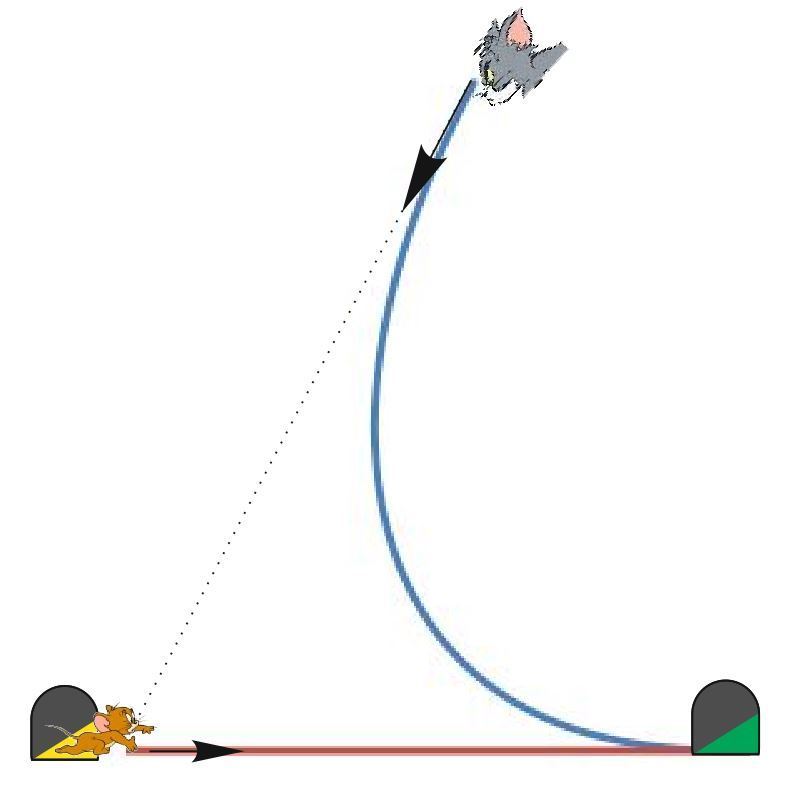 мышка успеет забежать в норку на один шаг быстрее чем кошка.
