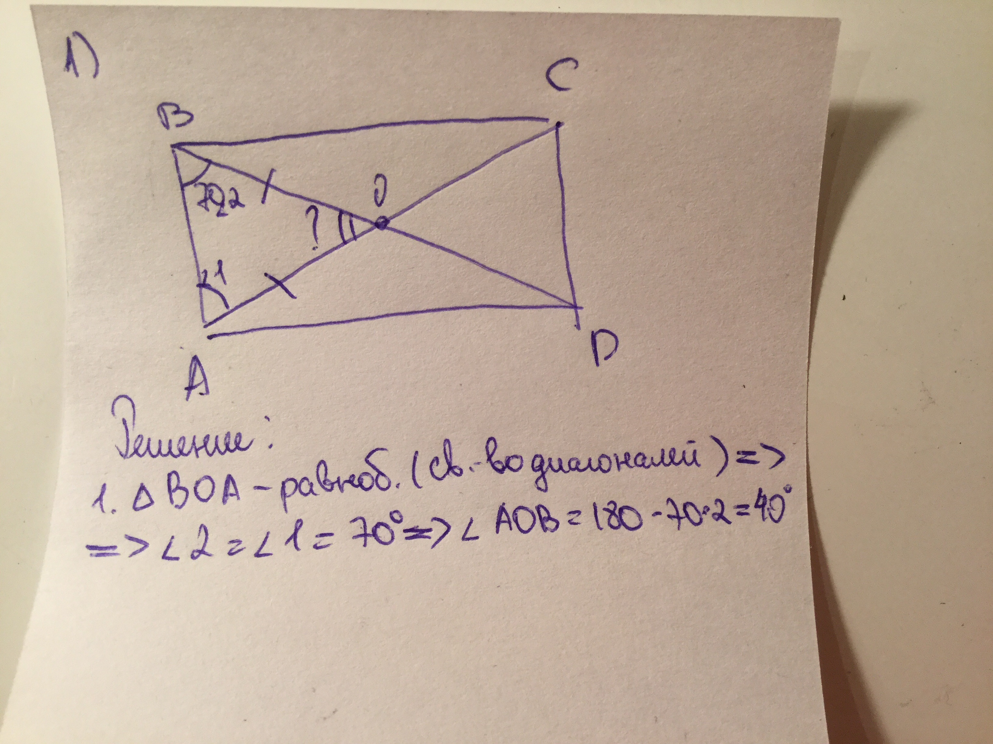 1) Дано : ABCD - прямоугольник , BD пересекается с AC = 0 .