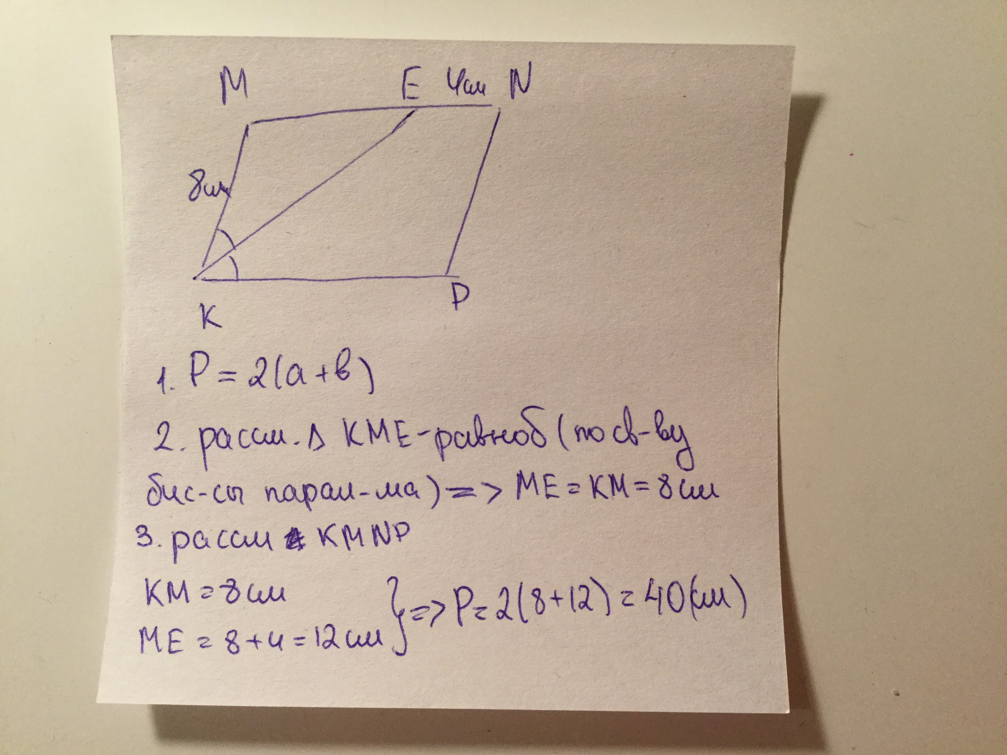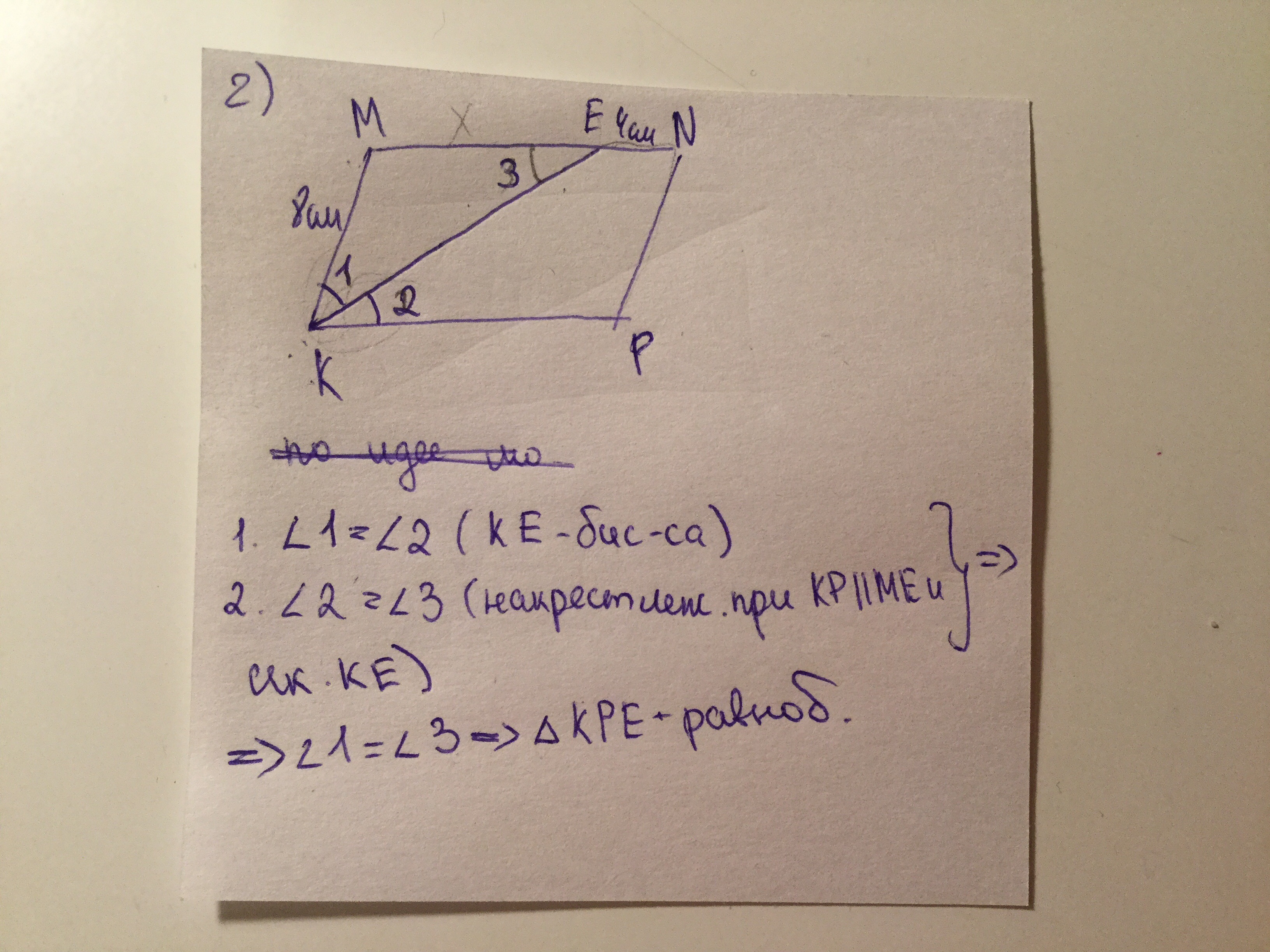 2) Дано : KMNP - параллелограмм , KE биссектриса угла MKP