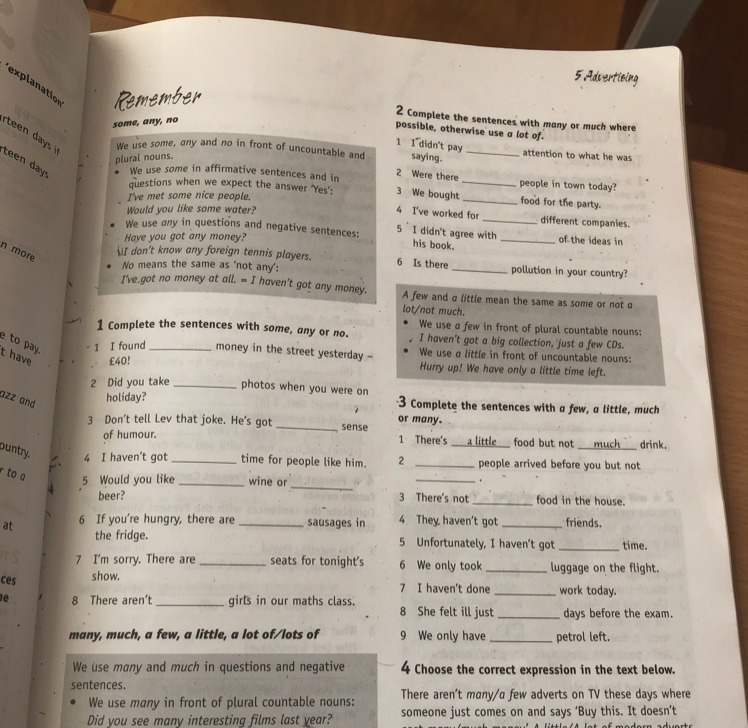 2 a few - many 3 much 4 many 5 much 6 a little 7 much 8 a few 9 a little