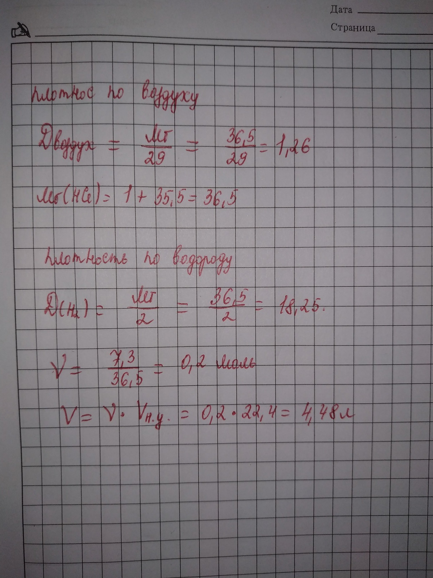 Газ HCl.Вычислить плотность,D(H2),D(воздух)