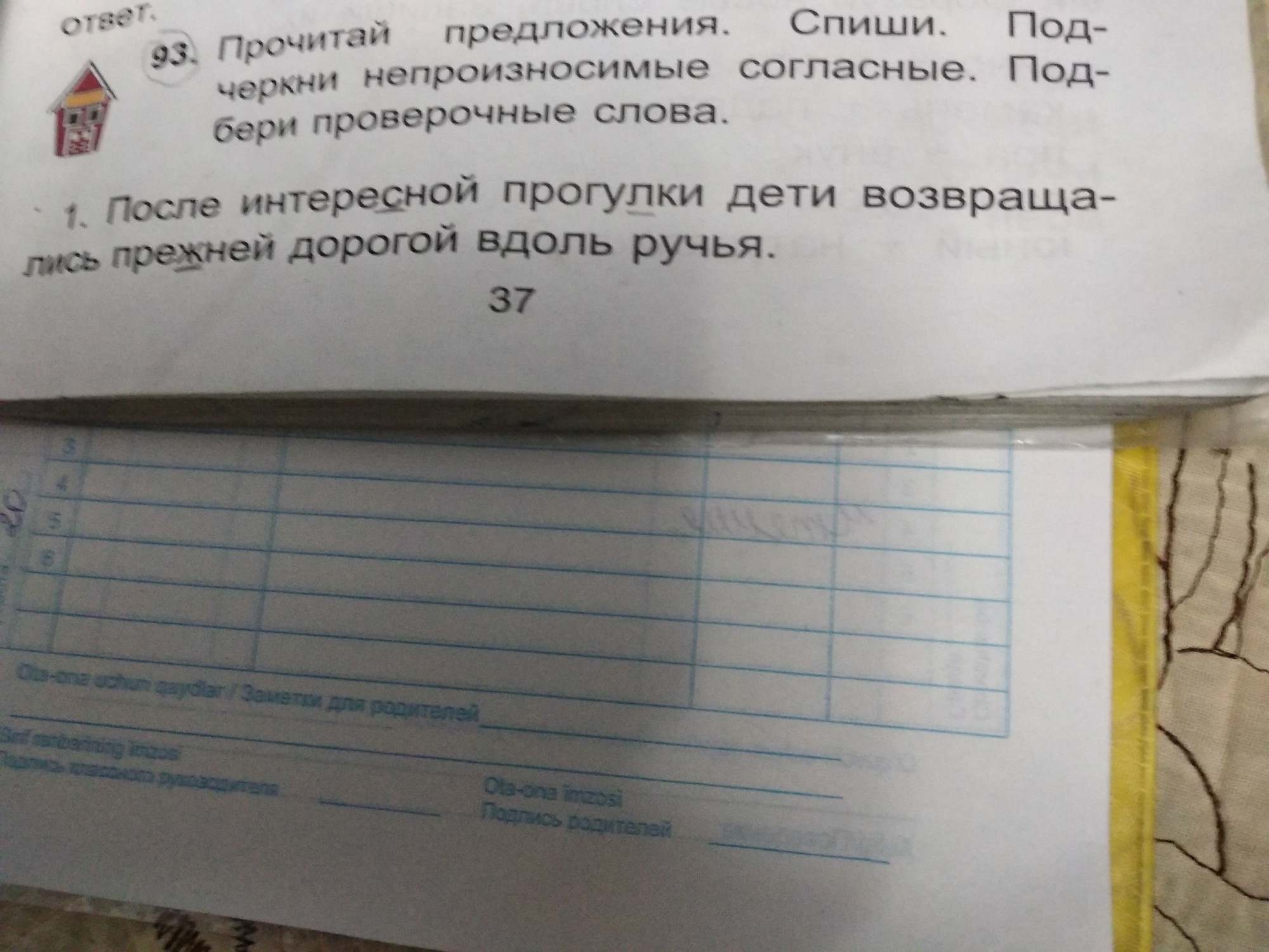 подчеркни непроизносимые согласные подбери проверочные слова после интересной прогулке дети возвращались прежней дорогой вдоль ручья