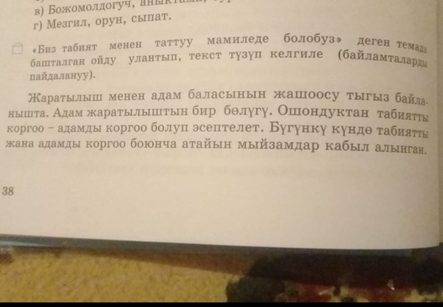 Ошол мыйзамдардын негизинде биз Кыргызстандын кооз жаратылышын коргой алабыз.Жаратылышка Манас баатырдын убагында эле аяр мамиле жасоо керектиги айтылат.Ал сөздөрдү Манастын жети осуятынан кездештире алабыз"Табият менен таттуу мамиледе болуу". Бул сөздөр аркылуу кыргыз эли мурунтан эле жаратылышты жанынан артык көргөнүн байкасак болот. Кыргыз эли ачык асман астында жаратылыштын койнунда шаркырап аккан суунун жээгинде ,мал багып күн көргөн.