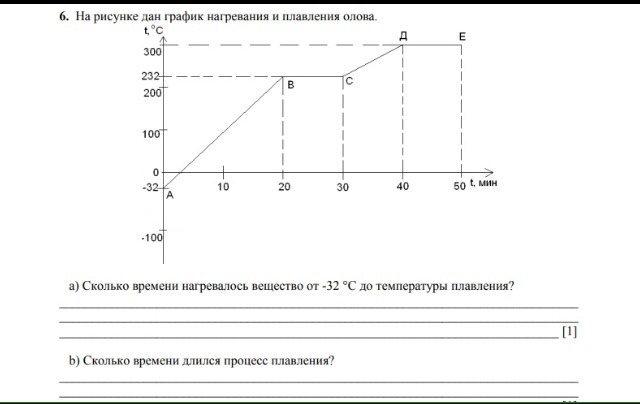 На рисунке дан график нагревания и плавления олова