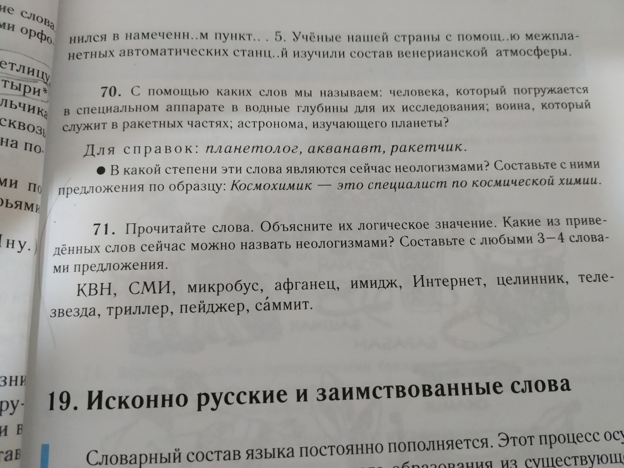 КВН-юмористическая программа, СМИ-средство массовой информации, небольшой автобус, афганец- человек который служил в афганистане, имидж-Целенаправленно формируемый образ политического деятеля, телевизионного ведущего, актёра и т. п. в целях их широкой популяризации и рекламирования, интернет-всемирная сеть, целинник-Работник на целинных землях, теле звезда-, ведущий телепередачи или артист, выступающий на телевидении, участвующий в телевизионных программах, пользующийся популярностью, триллер-Остросюжетное захватывающее художественное произведение, пейджер-Портативное радиоприёмное устройство со встроенным экраном для односторонней связи, получения информации, саммит-Собрание глав государств и правительств; встреча на высшем уровне..... Сегодня мы ходили в КВН!, сегодня в СМИ сказали, что будет дождь, я заходил в интернет, я смотрел триллер. Я думаю их можно назвать неологизмами