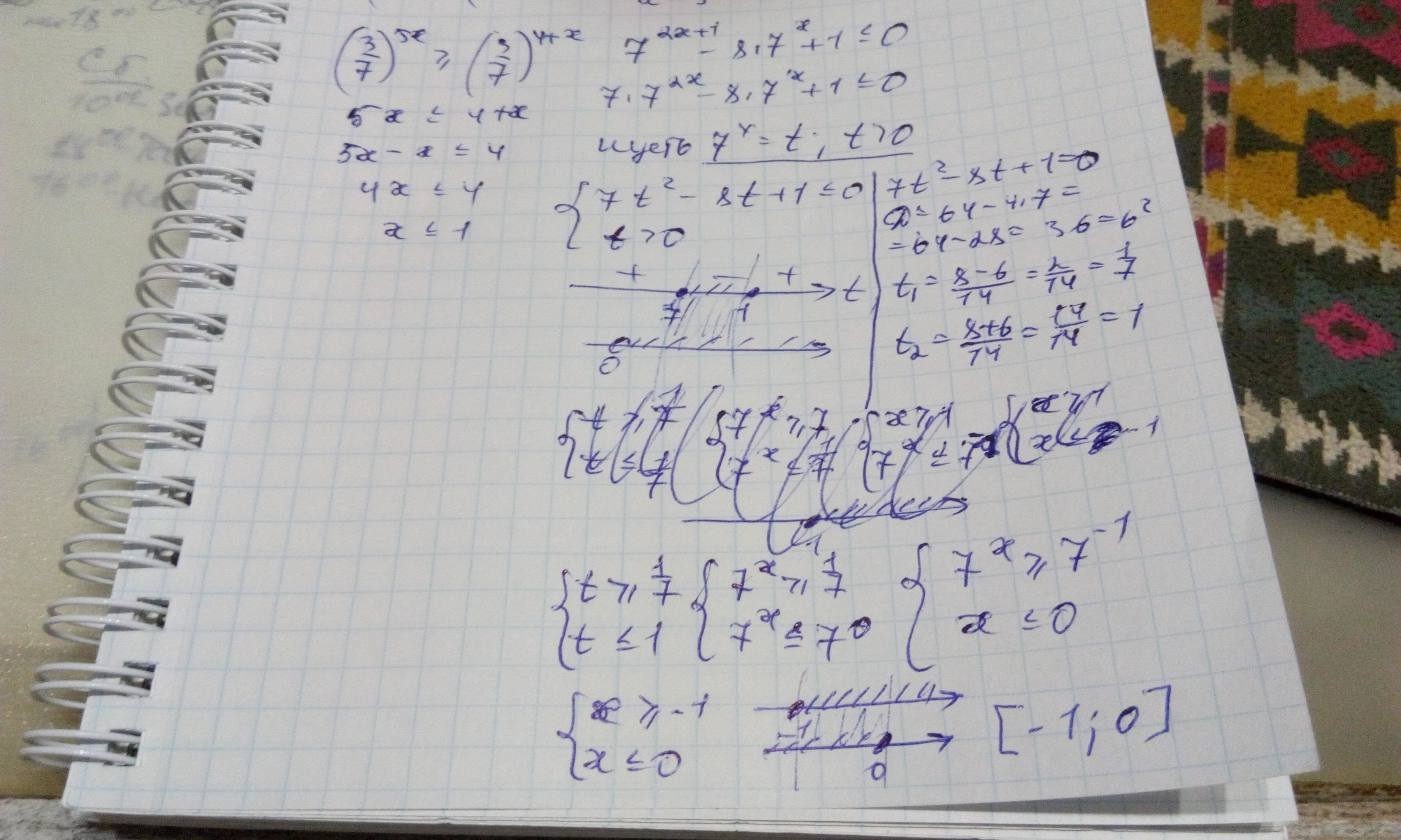 7*7²ˣ-8*7ˣ +1 ≤0 замена 7ˣ=а ОДЗ а>0