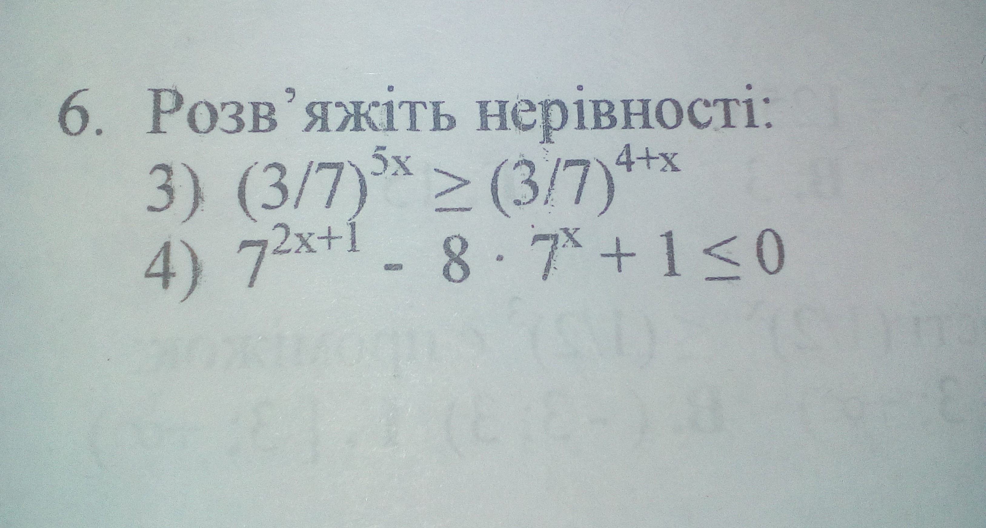 (3/7)⁵ˣ ≥ (3/7)⁴⁺ˣ