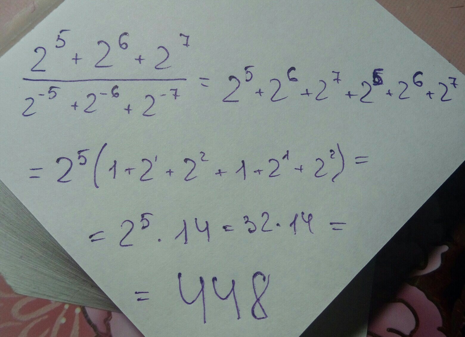 переносим знаменатель в числитель и меняем знаки у степеней и в знаменателе остаётся 1 его я не пишу. ответ: 448