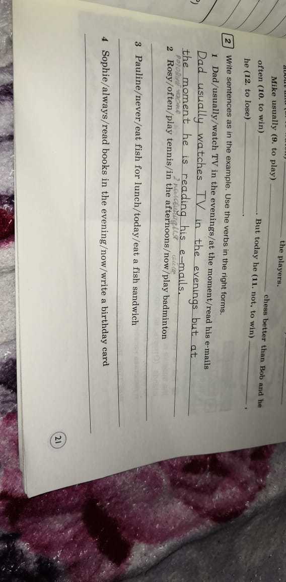 Sophie always reads books in the evening, but now she is writing a birthday card