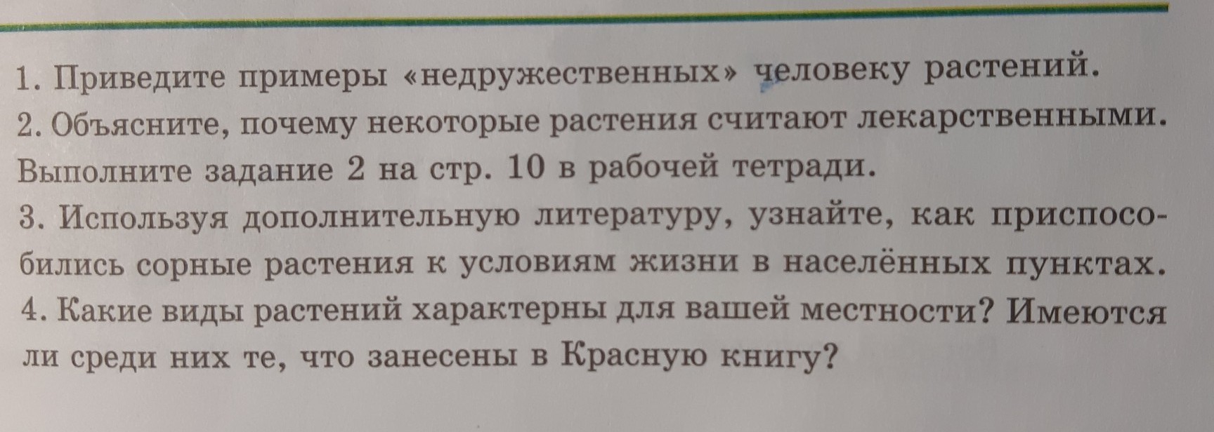 Ну 1) есть такие растения например Волчий глаз. Их так называют , потому что людям они причиняют вред...Могут быть ядовитыми, могут портить огород и нести моральный ущерб. Во 2) - они лечат людей, вернее из них делают лекарства или добавляют их и уже эти лекарства лечат людей... Ну а с 3) помочь не могу, не знаю где ты живёшь, но ёли клёны черёмухи сирени и вишни точно есть)))