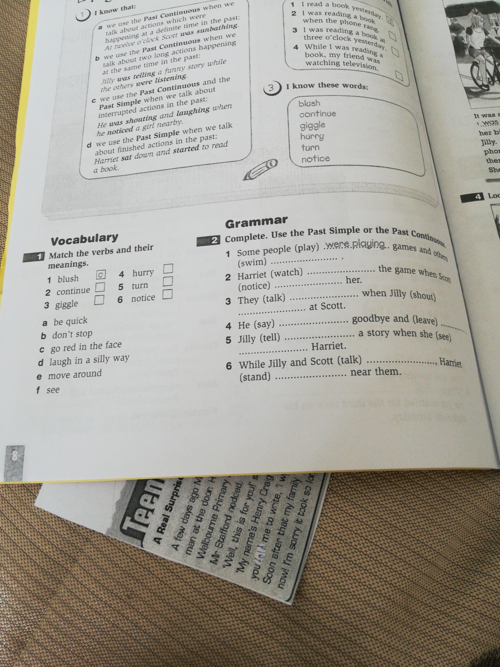 6 were talking, was standing