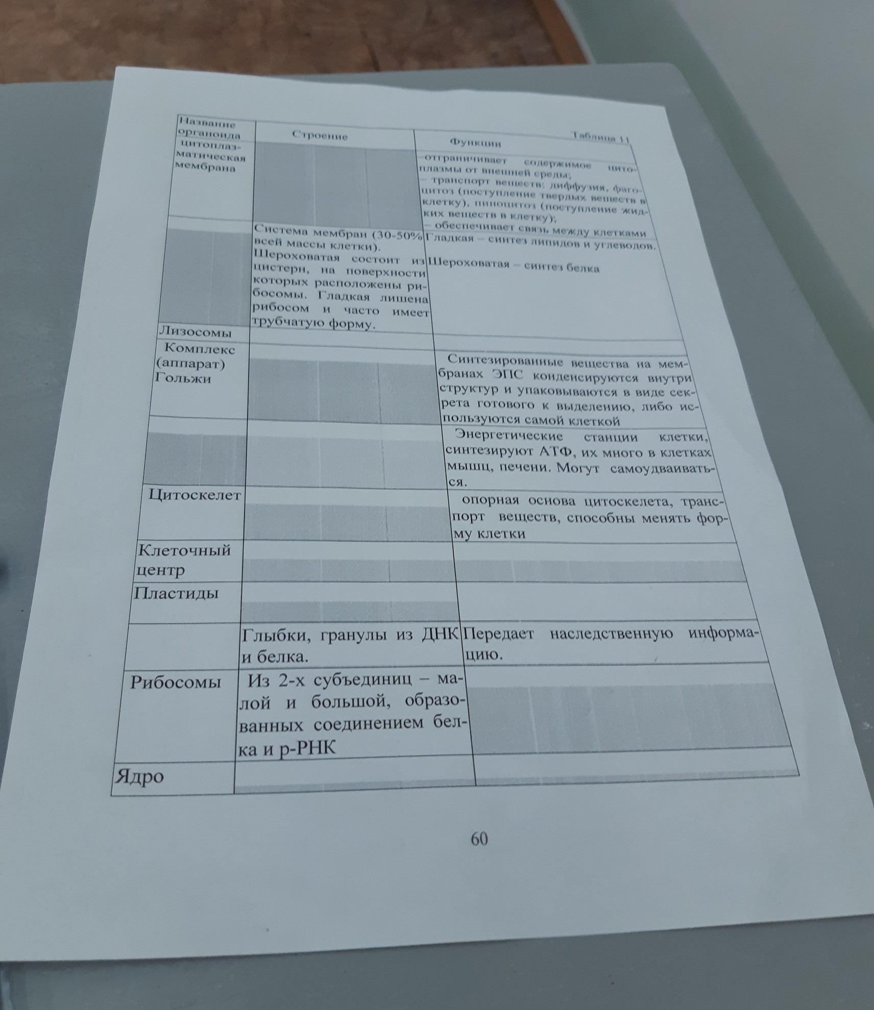 Рибосомы: функия -- синтез белков.