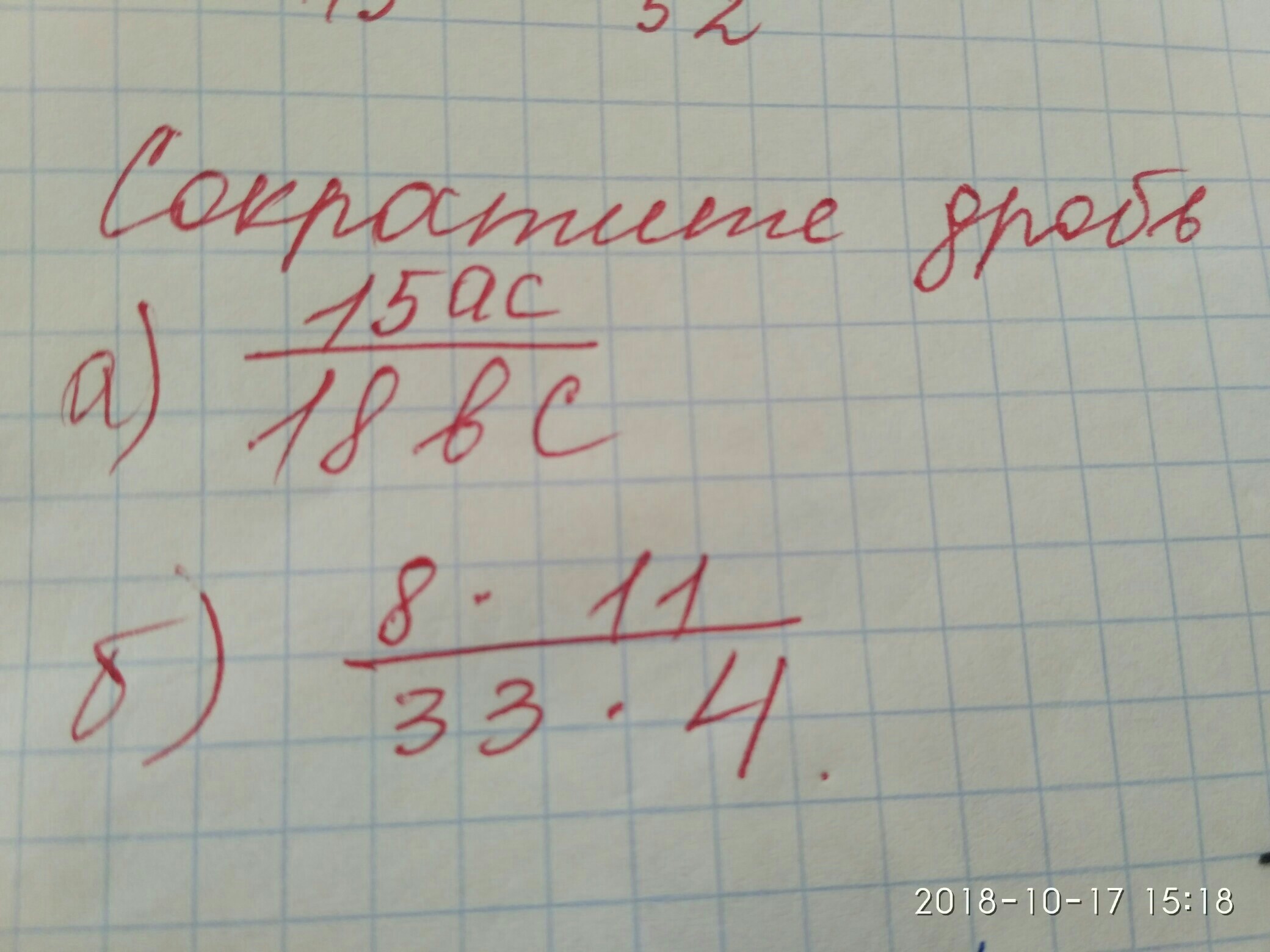 а)15ас/18bc=5а/6b
