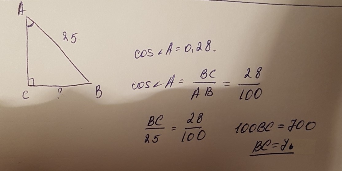 B4. В прямоугольном треугольнике АВС с прямым углом С, АВ-25,