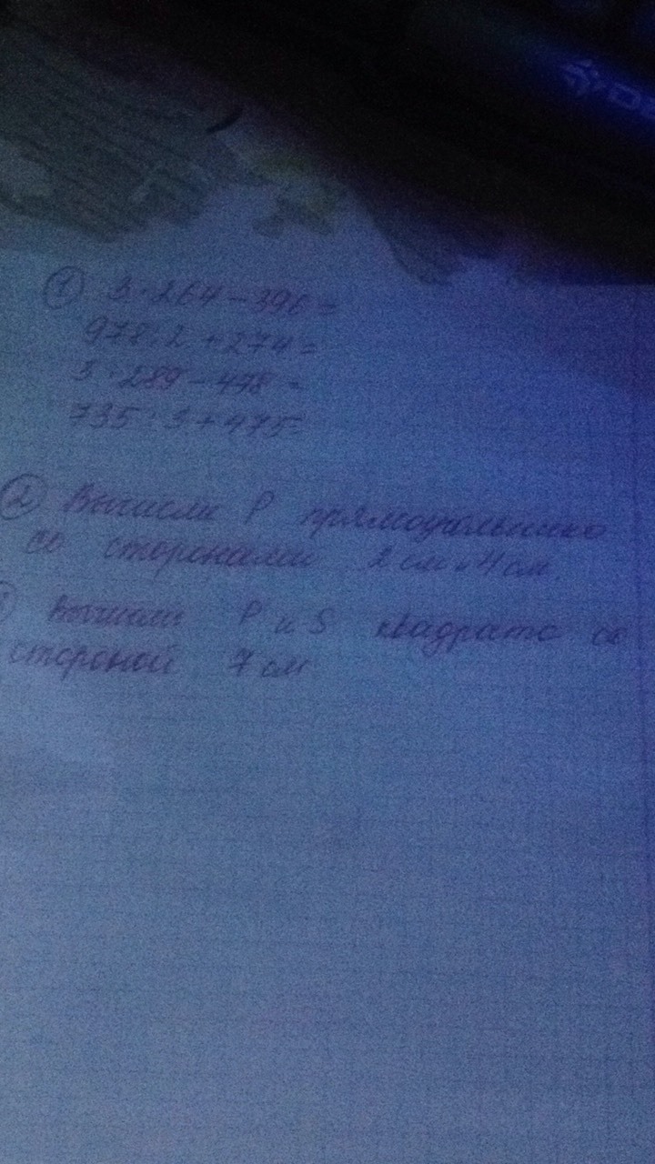 1)396; 2)763; 3)720. 2задание :P=a×b=2×4 =8cm; 3зад:Р=7×7=49; S=. (a+b)×2=(7+7)×2 =14×2 =28cm в кв.
