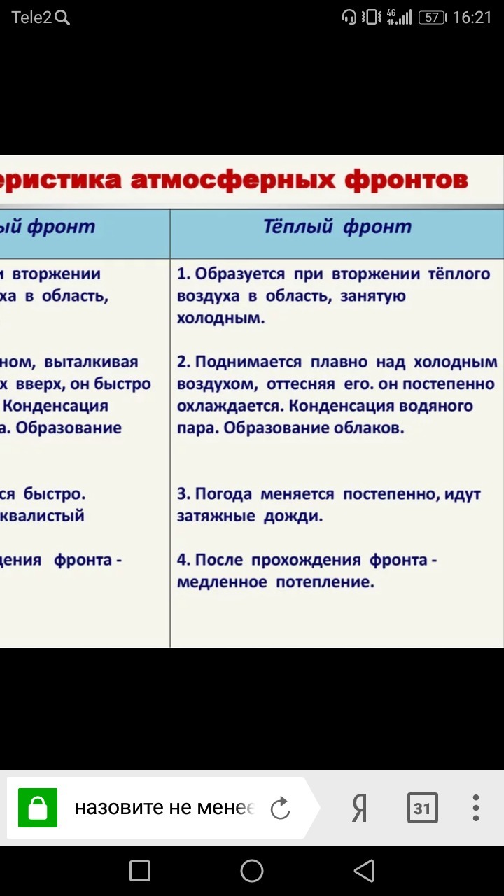 Назовите не менее двух коротких признаков тёплого атмосферного фронта именно коротких срочно очень коротких