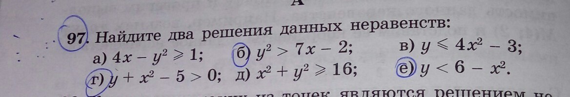 е) у<6 (0<3),(0;1). Можно было взять х=1 или другое число.