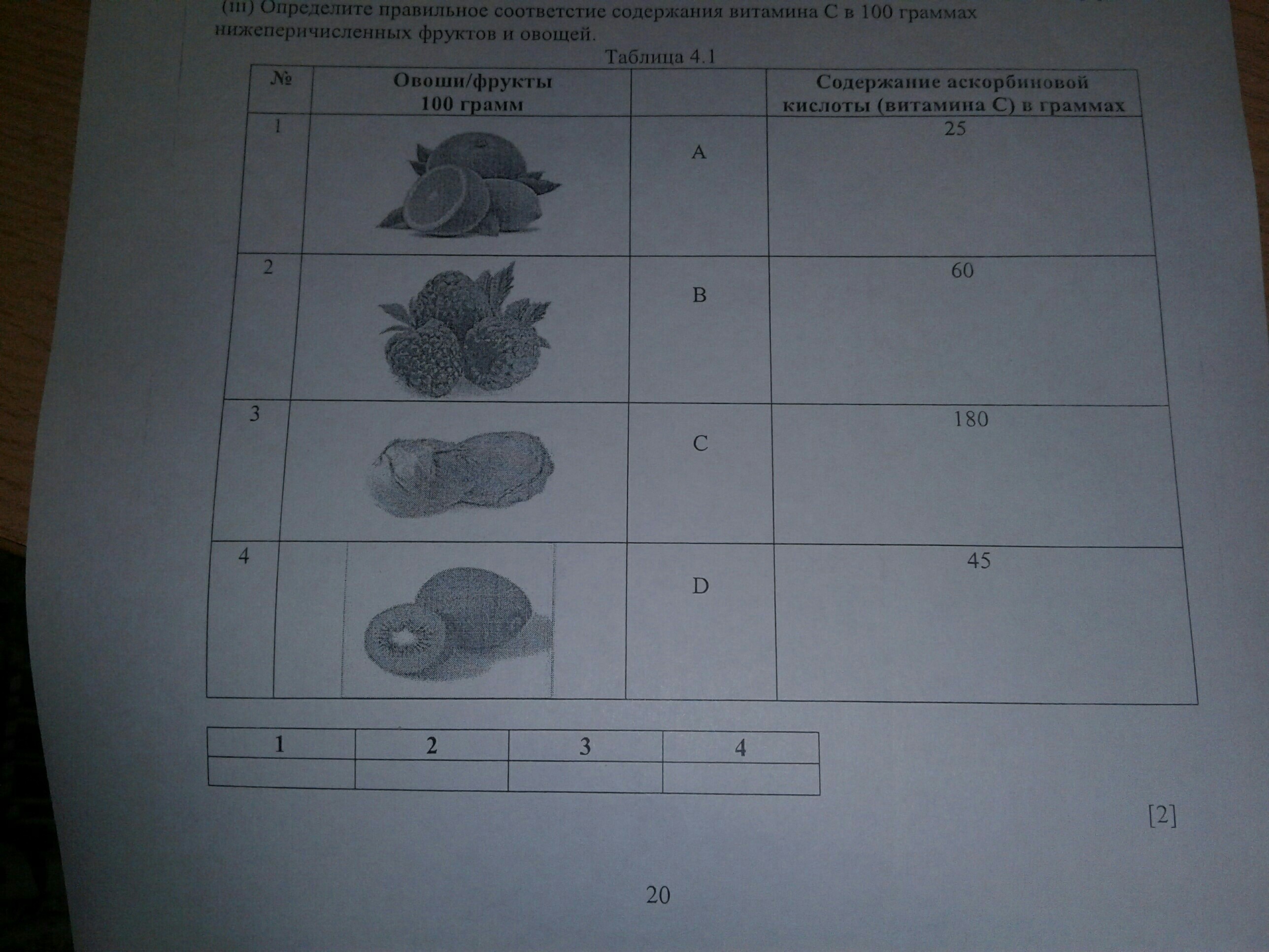 опредилите правильное соответствие содержания витамина С в 100 граммах нижеперечисленных фруктов и овощей