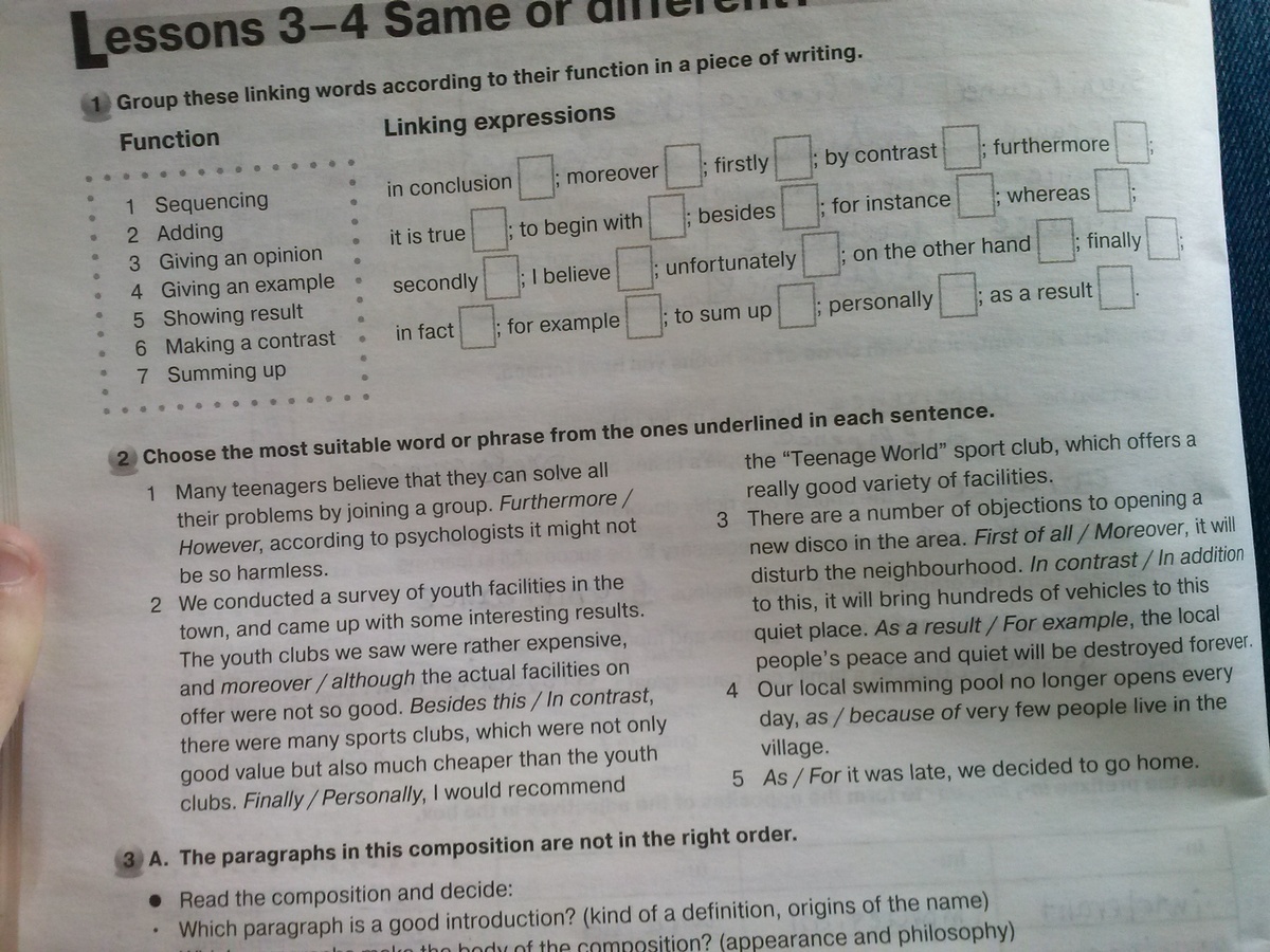 1. Sequencing: in conclusion, firstly, to beging with, secondly, finely