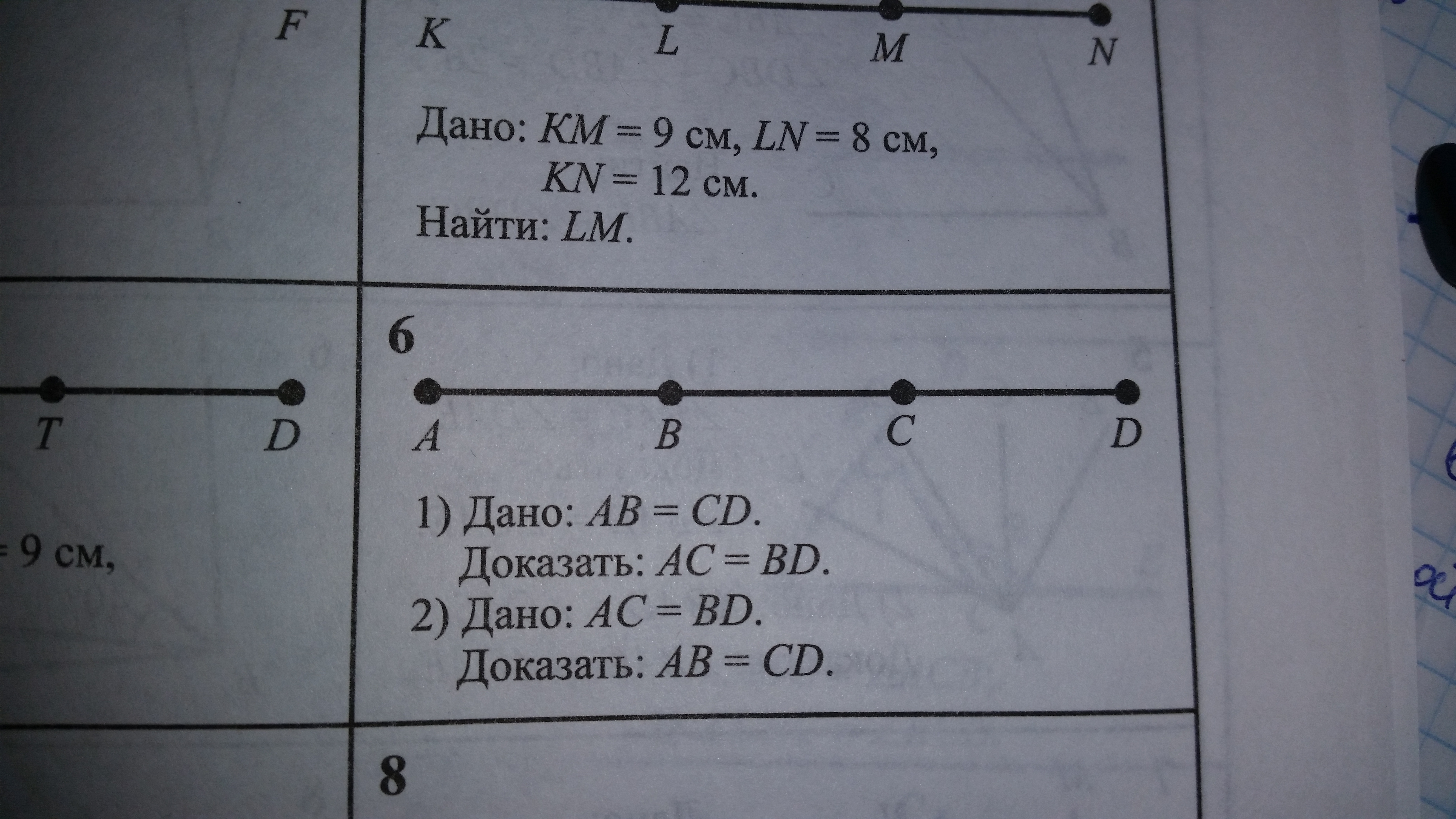 ВС - общая, а АВ=СД, понятно, что АС=ВД.