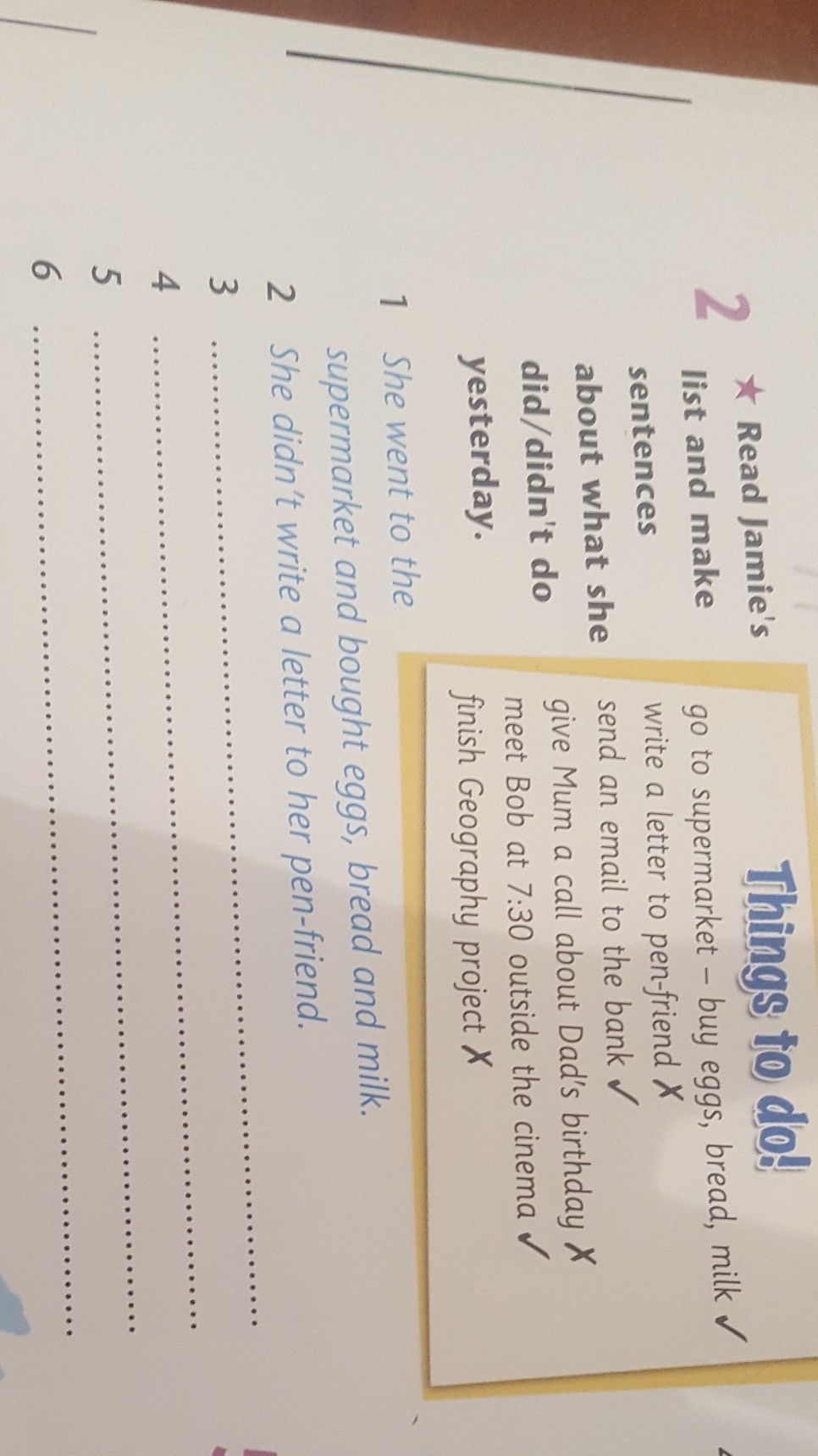 6. She didn't finish Geography project.