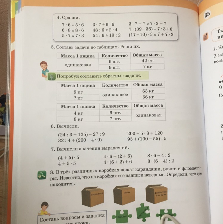 В магазин привезли несколько ящиков. Их поделили на две группы: с яблоками и с грушам. Ящиков с яблоками и грушами поровну, но масса всех ящиков с яблоками 63 кг, а масса всех ящиков с грушами 56. Известно, что масса одного ящика с яблокам 9 кг, сколько весит один ящик с грушами?