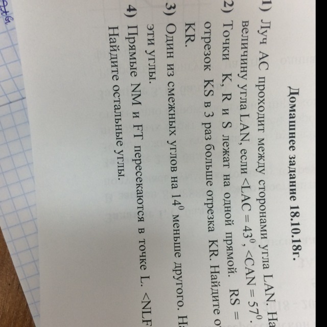 1. <LAN=<LAC+<CAN=43+57=100 градусов