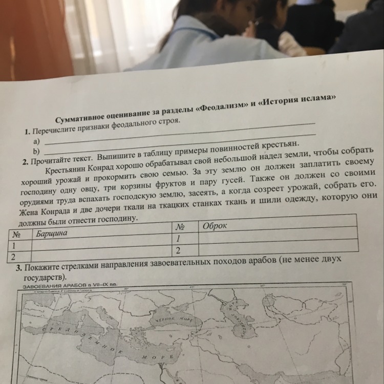 2) Обязательная повинность (вспахать землю, засеять и собрать урожай на земле господина - хозяина)
