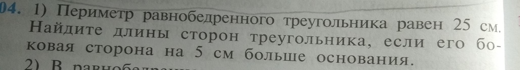 Следовательно, основание треугольника = 5 см, а боковые стороны по 10 см.