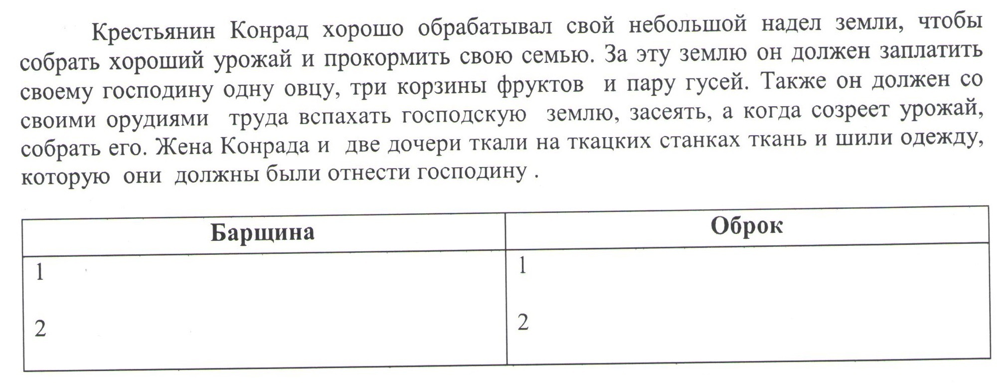 Прочитайте текст и выпишите в таблицу примеры повинностей крестьян,