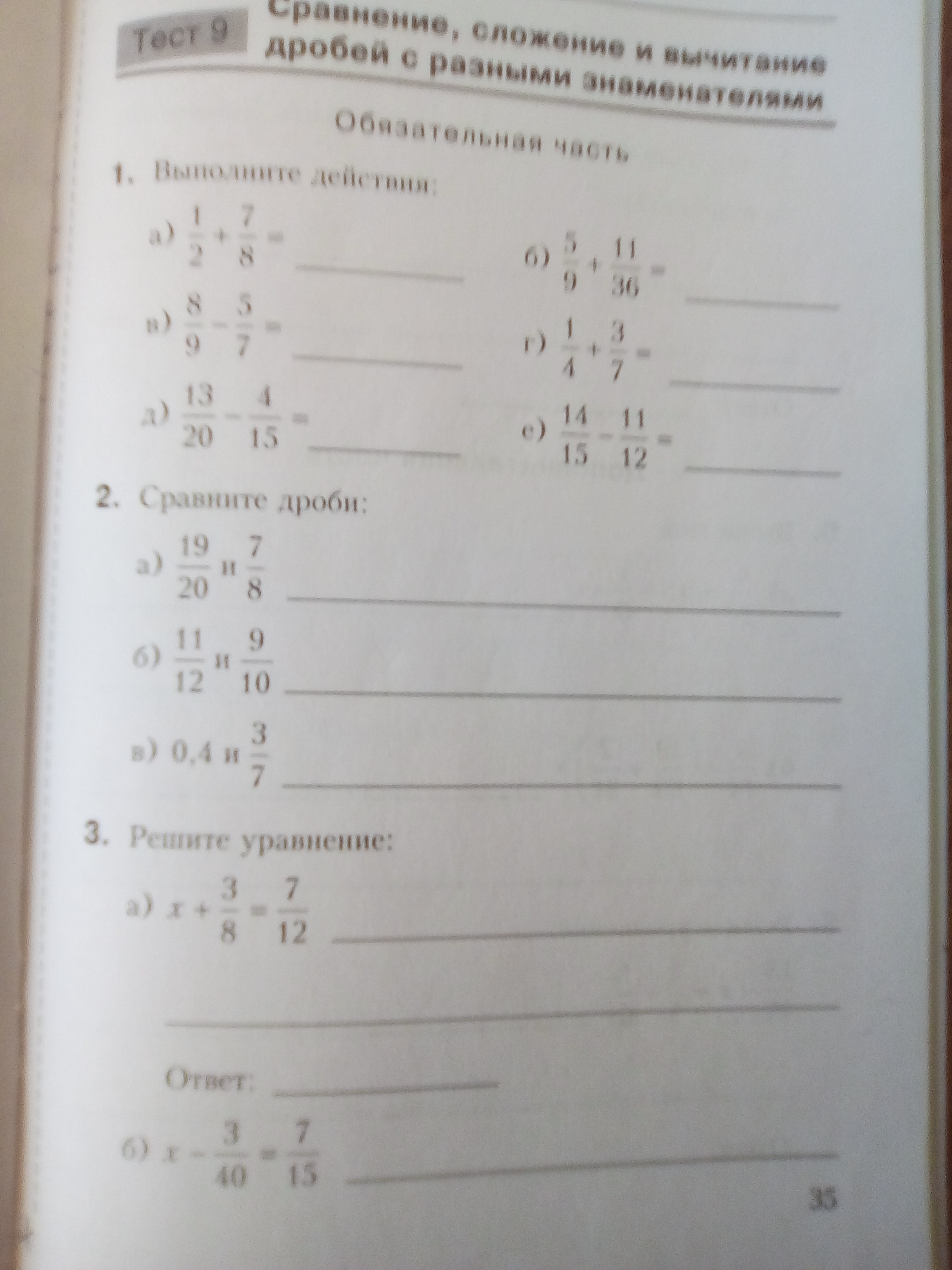 а) 19/20 и 7/8 = 38/40 и 35/40. Ответ >