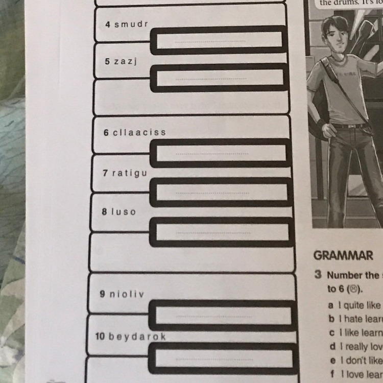 Помогите пожалуйста!!! Поставить буквы в правильном порядке чтобы получились музыкальные слова