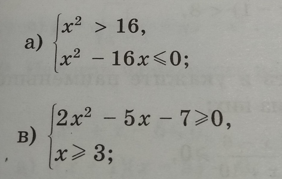 а) решая первое неравенство получается, что х принадлежит от -4 до 4 (т.к. корень - два значения)