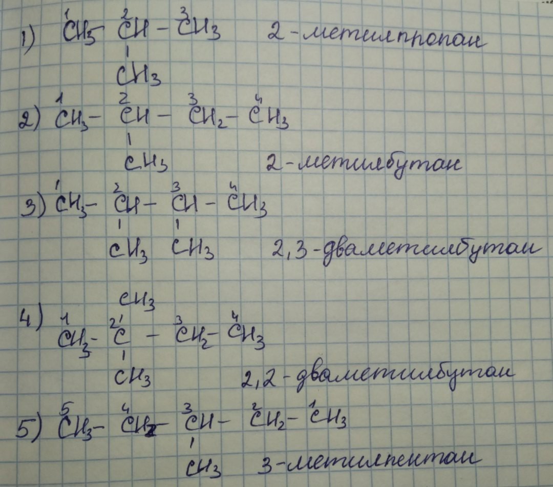 Придумать 5 углеводородов разветвленного строения, нужно записать их сокращенную структурную формулу и назвать
