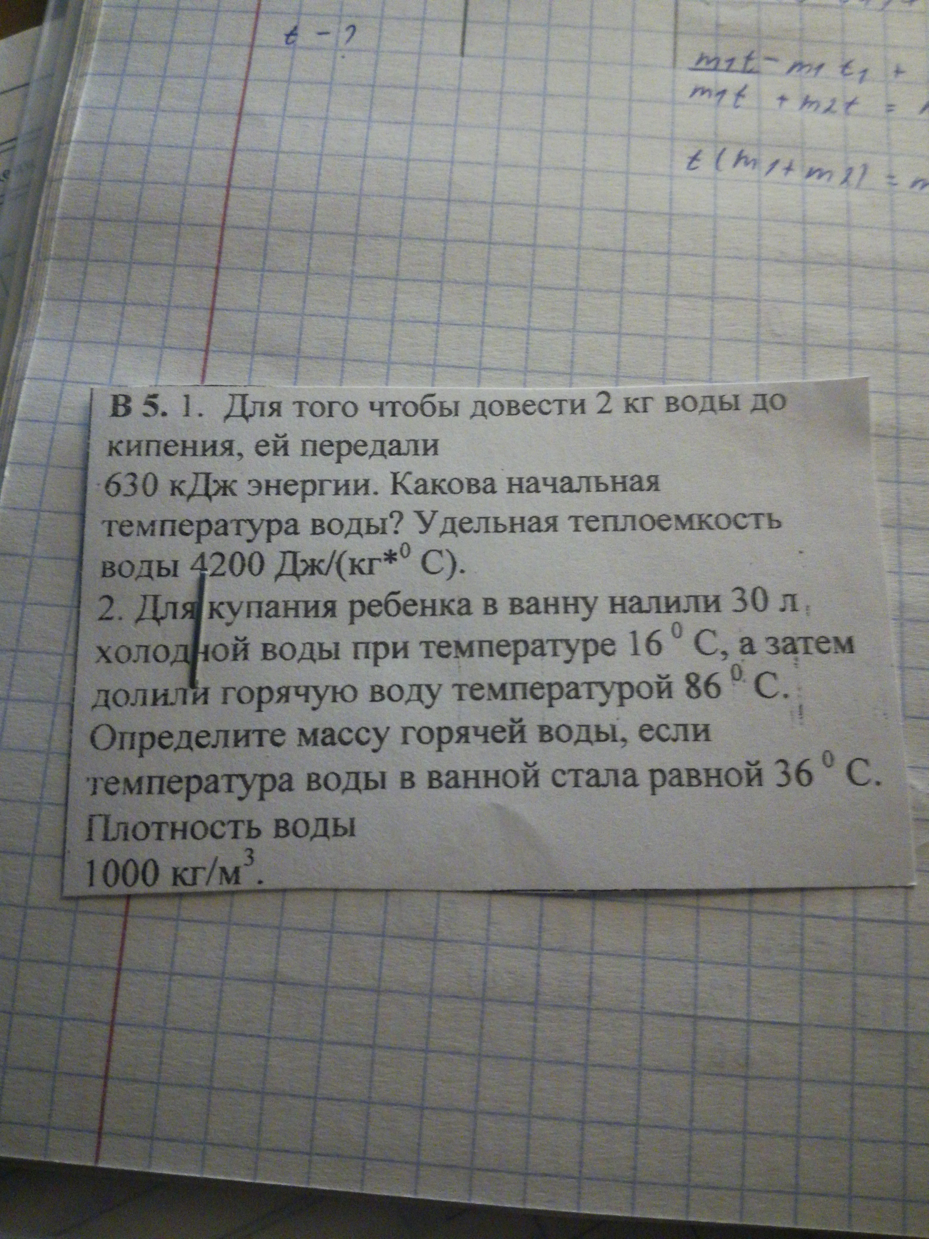 второе по такому-же принципу, там Q1=Q2. Пишешь что c1m1(t-t1) = c2m2(t2-t), а потом выносишь m2(горячей воды):m2=с1m1(t-t1)c2(t2-t) И вычисляешь, раскрывая скобки, надеюсь на "лучший ответ"!)