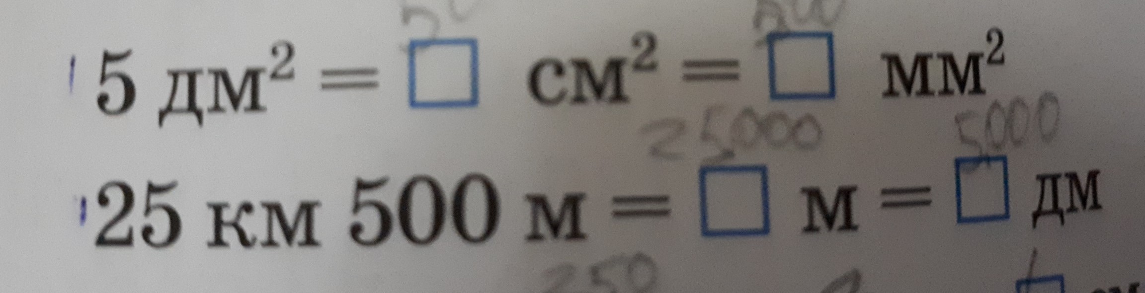 25км 500м = 25000м= 2500дм